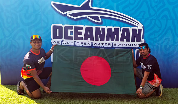 থাইল্যান্ডের ক্রাবি উপকূলে নীল আন্দামান সাগর, দূরে চুনাপাথরের উঁচু পাহাড় আর মাঝখানে উত্তাল ঢেউ — এমন দৃশ্যের মধ্যেই ১০ কিমির এক কঠোর সাঁতার পূর্ণ করে দেশে ফেরালেন বাংলাদেশের দুই নিবেদিতসাথী।