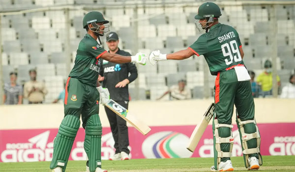 তৃতীয় উইকেটে নাজমুল হোসেন শান্তের সঙ্গে একযোগে নামা তানজিদ হাসান তামিম ও শান্ত এক ঝলমলে জুটি গড়ে দলকে জয়পথে ফিরিয়ে দেন। দুজন মিলে ১২০ রানের বড় জুটি করেছেন, যা বাংলাদেশকে দৃঢ় ভিত্তি দিয়েছে। তানজিদ ৫৮ বলে ৭৬ রান করে যান—১০ চার ও ৪ ছয়ে সাজানো ইনিংসটি জেইডেন লেনক্সের বলে কটবিহাইন্ড হয়ে শেষ হয়। শান্ত অবশ্য আউট হননি—রিটায়ার্ড হার্ট হওয়ায় মাঠ ছাড়েন; তিনি ৭১ বল খেলে ৫টি চার ও ১ ছক্কায় ৫০ রান করেন।