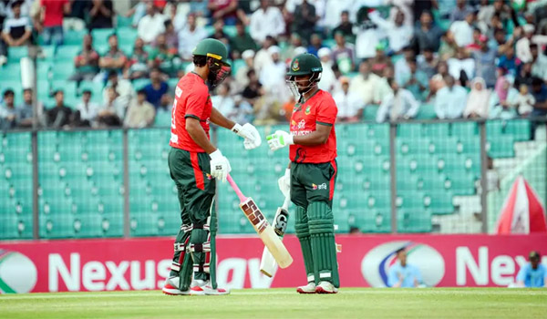 ততক্ষণে দলের চাপ সামলাতে আসে তাওহীদ হৃদয় ও পারভেজ ইমন। এই চতুর্থ উইকেট জুটিই ম্যাচের মোমেন্টাম বদলে দেয়। ইমন মাত্র ১৪ বলে ঝটপট ২৮ রান করেছে এরপর আউট হন, কিন্তু তাওহীদ মাঠেই দাঁড়িয়ে যান। হৃদয় ২৭ বলে অপরাজিত ৫১ রান করে দলকে জয় নিশ্চিত করেন। ডানহাতি ব্যাটারকে সঙ্গ দিতে শামীম হোসেন পাটোয়ারি ১৩ বলে অপরাজিত ৩১ রানের ঝড়ো ইনিংস খেলেন, যার ফলে হাতে করে লিড নিয়েই টাইগাররা সহজ জয় পেয়েছে।