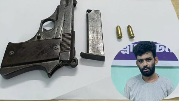 নগরীতে ১২ মামলার অন্যতম আসামী গলাকাটা রনি মহানগর গোয়েন্দা বিভাগ কর্তৃক গ্রেফতার হয়েছে। এ সময় তাকে থেকে একটি পিস্তল, ম্যাগজিন এবং গুলিসহ অস্ত্রশস্ত্র উদ্ধার করা হয়। গতকাল বুধবার বিশেষ অভিযান চালিয়ে এই অভিযান পরিচালনা করা হয়।